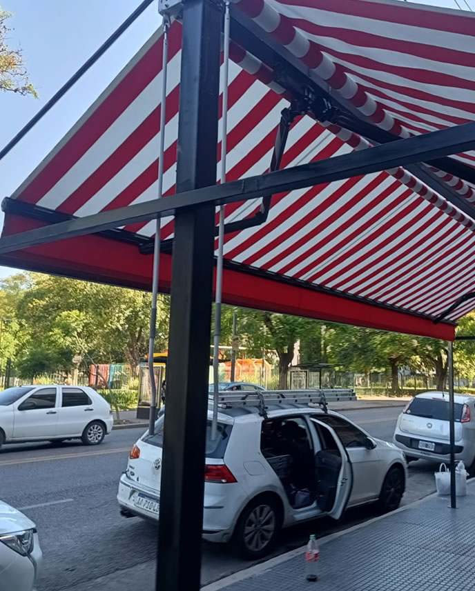 Fabricamos el Toldo, tanto la tela como la herreria en menos de 10 dias y lo instalamos.